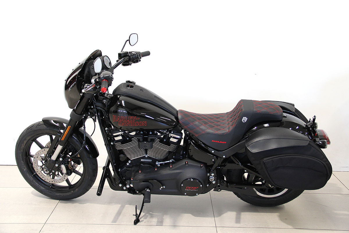 Low Rider S, in versione special, completamente customizzata da Harley Davidson Bergamo: manopole Arlen Ness, sella Saddlemen, cupolino club style, crash bar e para borse, borse a sgancio rapido Leather Pros. l’incontro perfetto tra potenza brutale ed eleganza ribelle.