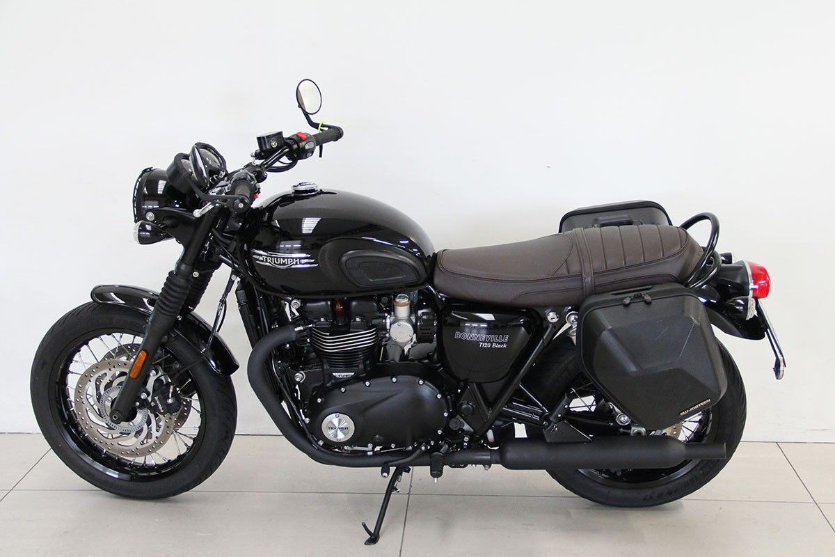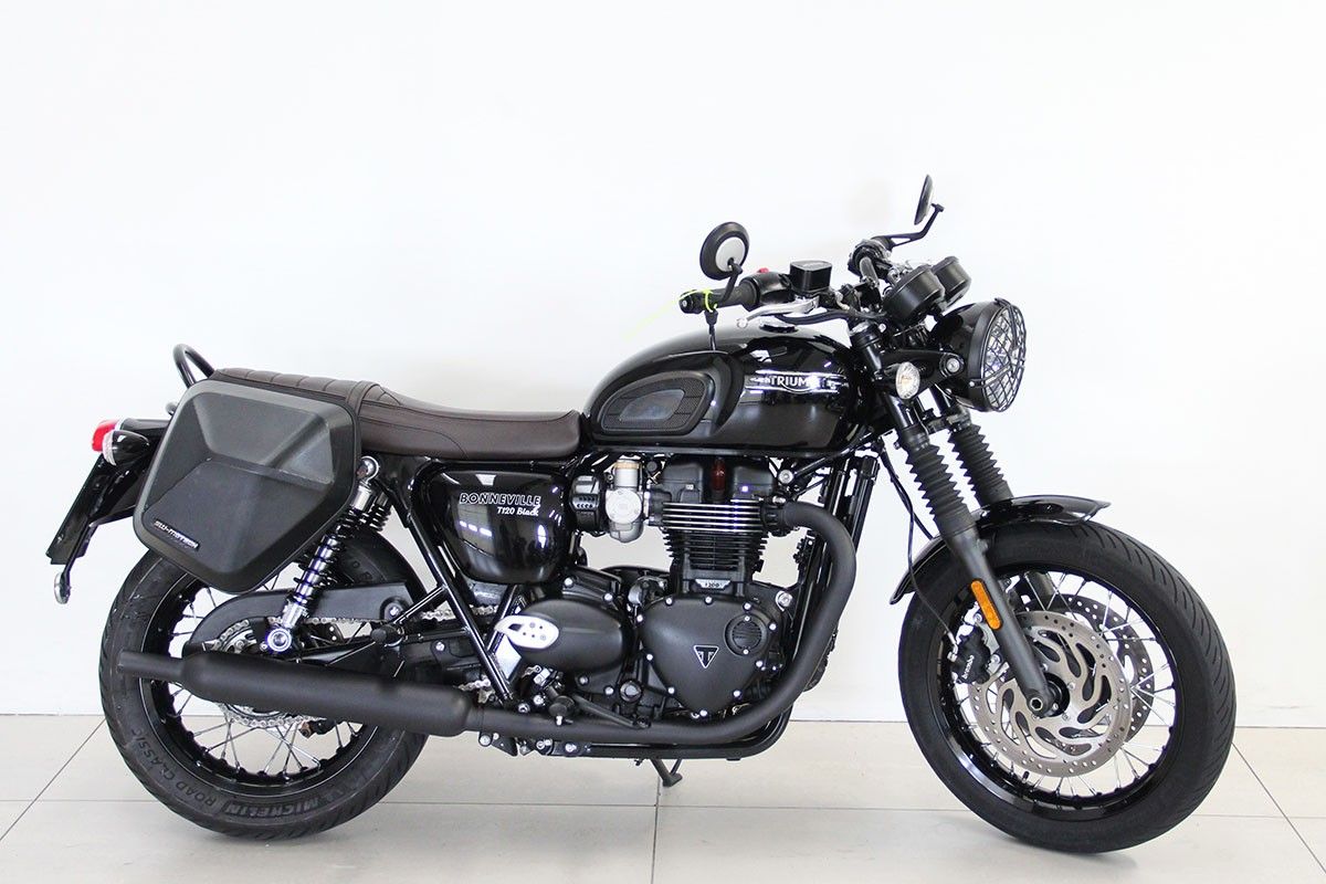 Triumph bonneville t120 black unico proprietario in ottime condizioni accessoriata con borse laterali a sgancio rapido touratech, griglia faro e protezione del radiatore.