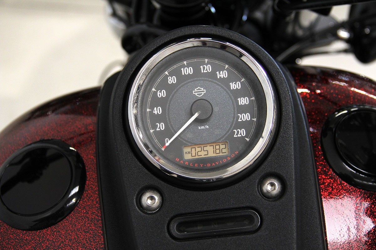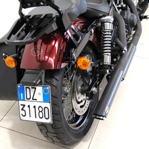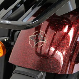 Una vera e propria tentazione su due ruote: manubrio Street Bob special, filtro aria Willie G.Skull, scarichi V&H, sissy bar e portapacchi a sgancio rapido, supporti frecce anteriori Rizoma, manopole Get a Grip,tappo benzina a scomparsa e indicatore carburante a led, coperchio primaria e fasatura serie Black Fin e stupenda verniciatura hard candy custom !