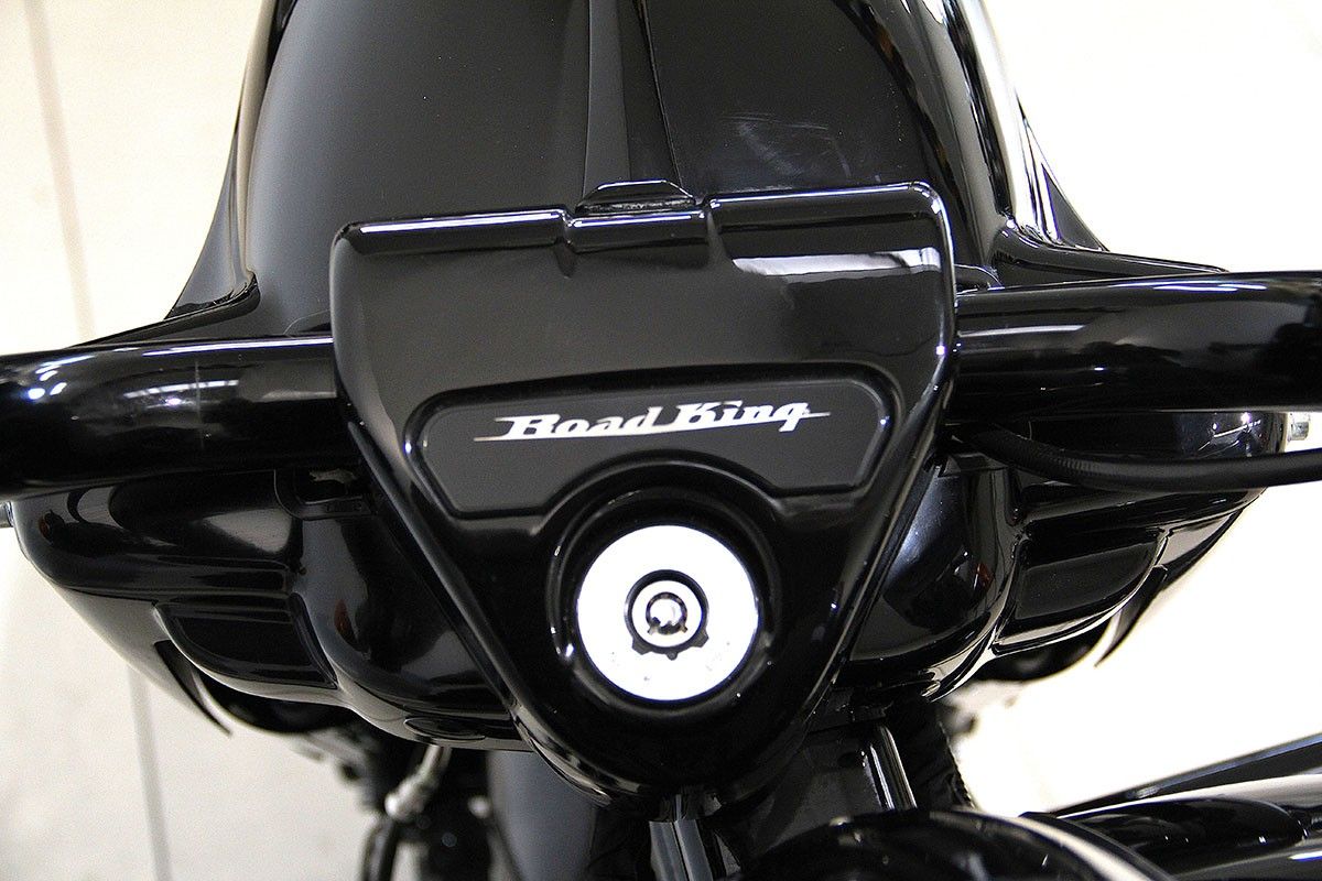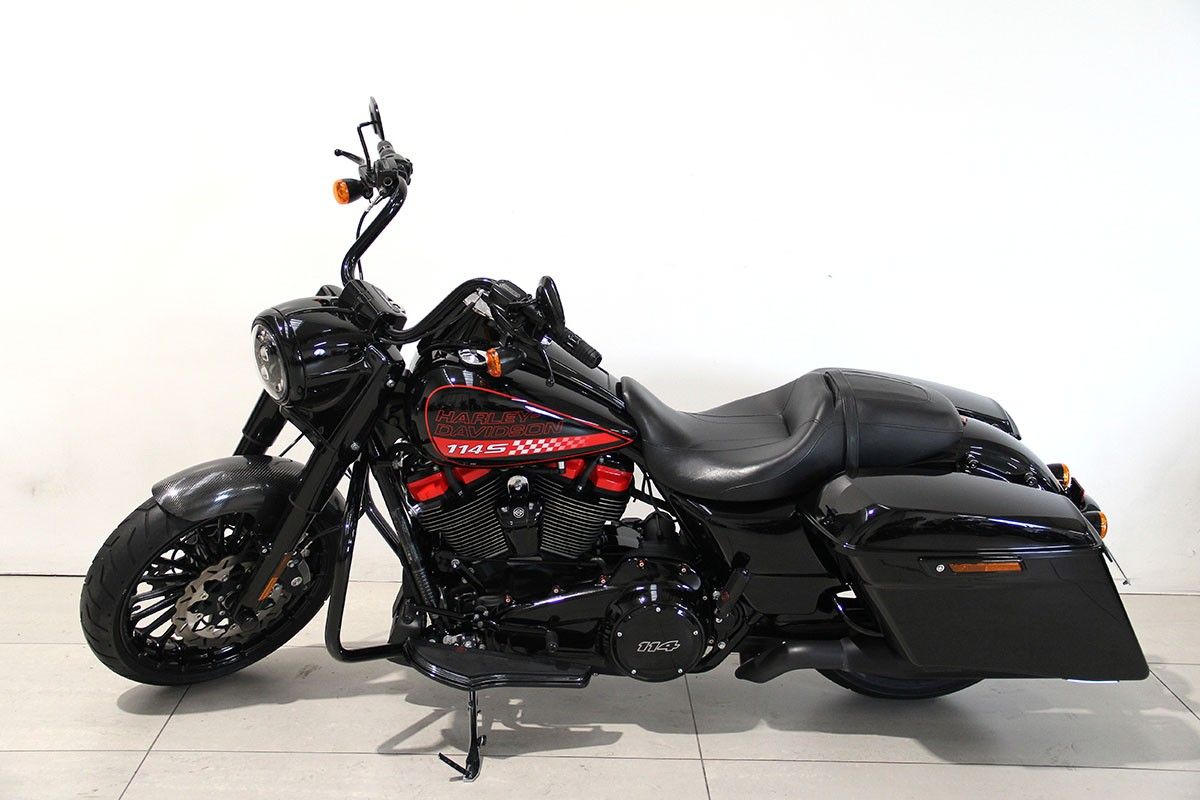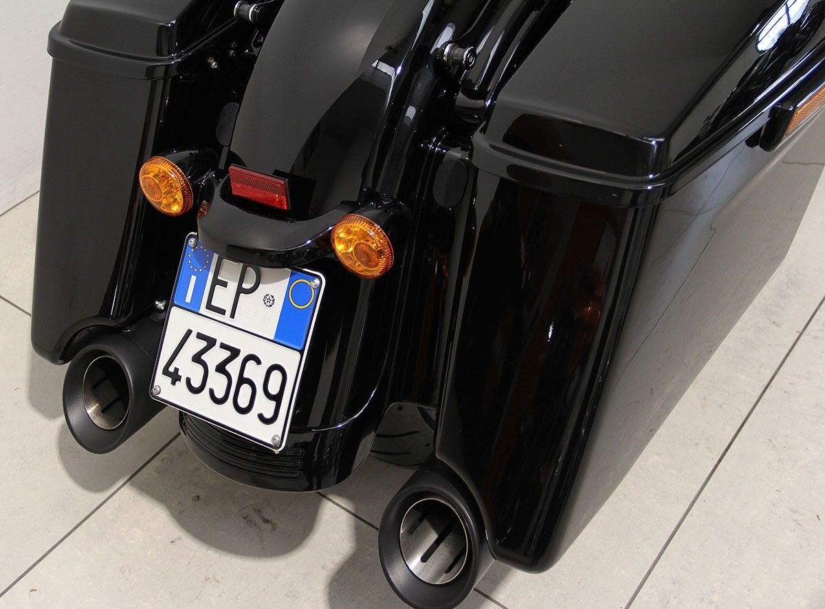 Road King Specal: la libertà ha un suono…e si fa sentire! E la moto di chi sceglie il carattere prima delle mode, di chi vuole arrivare lontano, ma soprattutto con stile. Verniciatura "special" eseguita da Harley Davidson Bergamo, come la distribuzione, completamente ripristinata, tagliando completo fatto e gomma posteriore sostituita. Customizzata con grande stile: collettori ad "X" V&H, terminali Screamin Eagle,filtro aria aperto, stage 1, faro a led adattivo, manopole Kahuna, pedane guidatore e passeggero con pedalini cambio e freno, serie Defiance,predisposizione per sgancio rapido, parafango anteriore in carbonio, dischi freno Galfer, teste del motore e viteria abbinati alla livrea. Qui non c'è spazio per il superfluo, solo puro spirito ribelle.