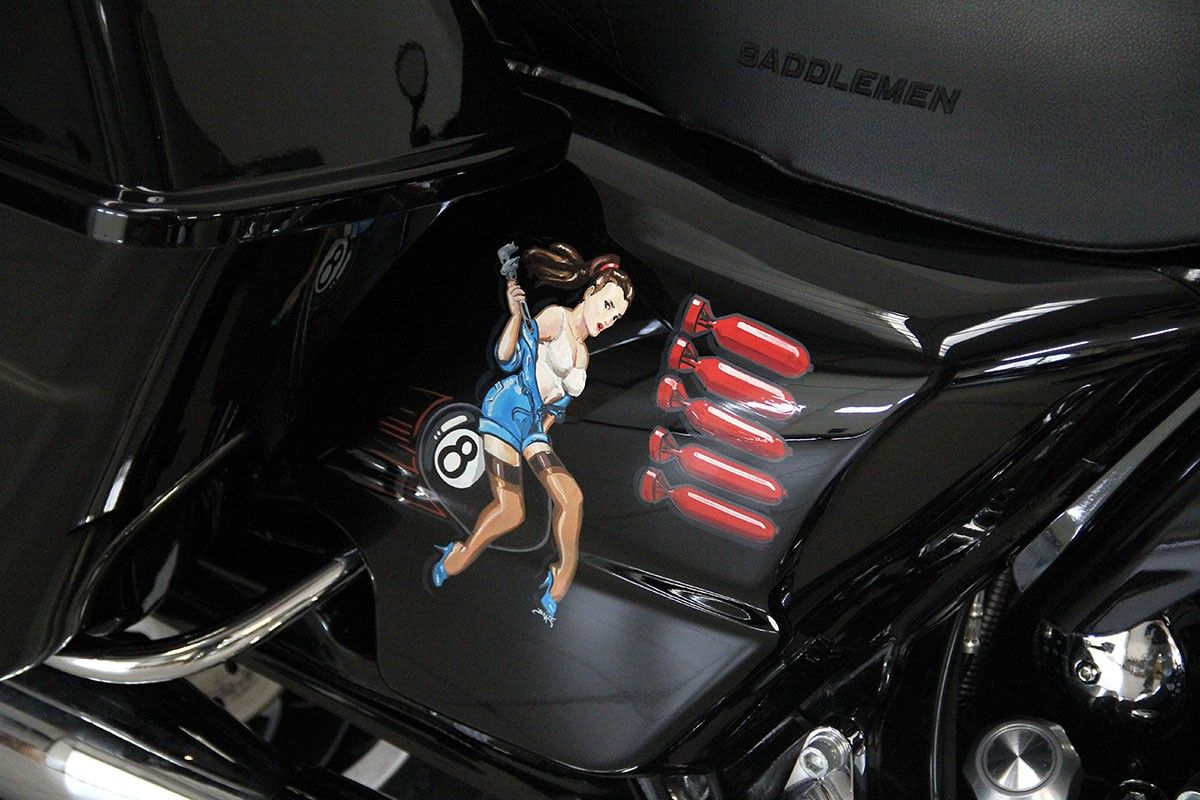 Bellissima Street Glide, con accessori che le donano comfort da lungo viaggio e un' anima da rockstar: scarichi Freedom, sella Saddlemen, filtro aria RSD e specchietti custom, ed uno spettacolare impianto Soundstream con CarPlay. La Street Glide non ti segue, ti guida verso ogni avventura!
