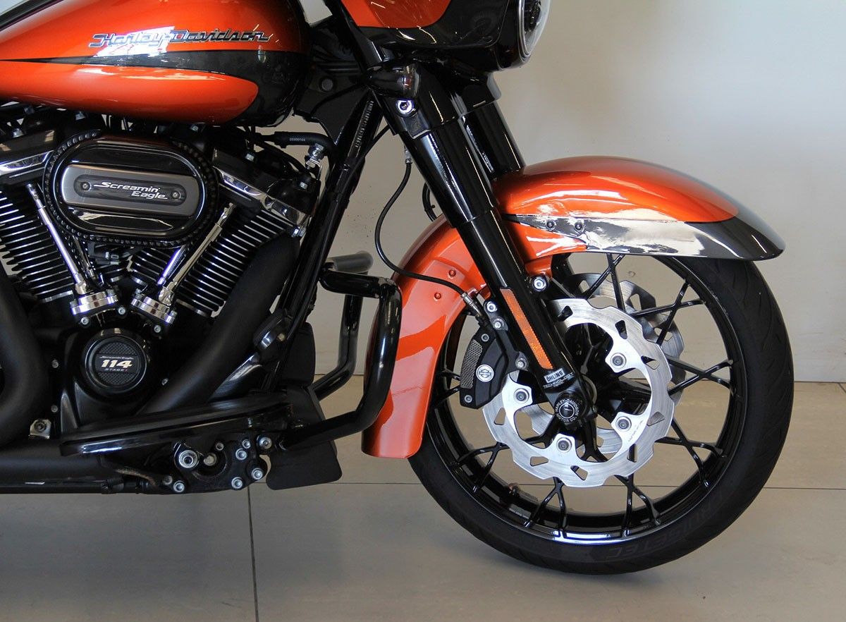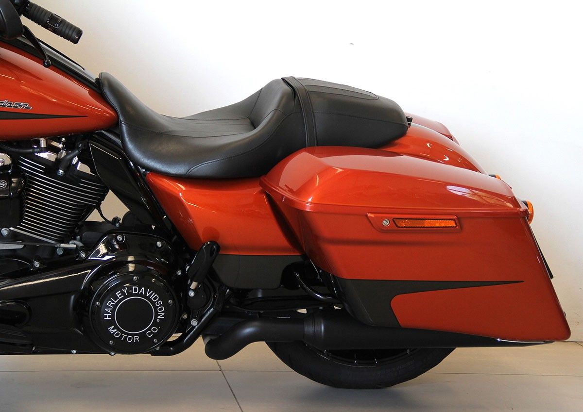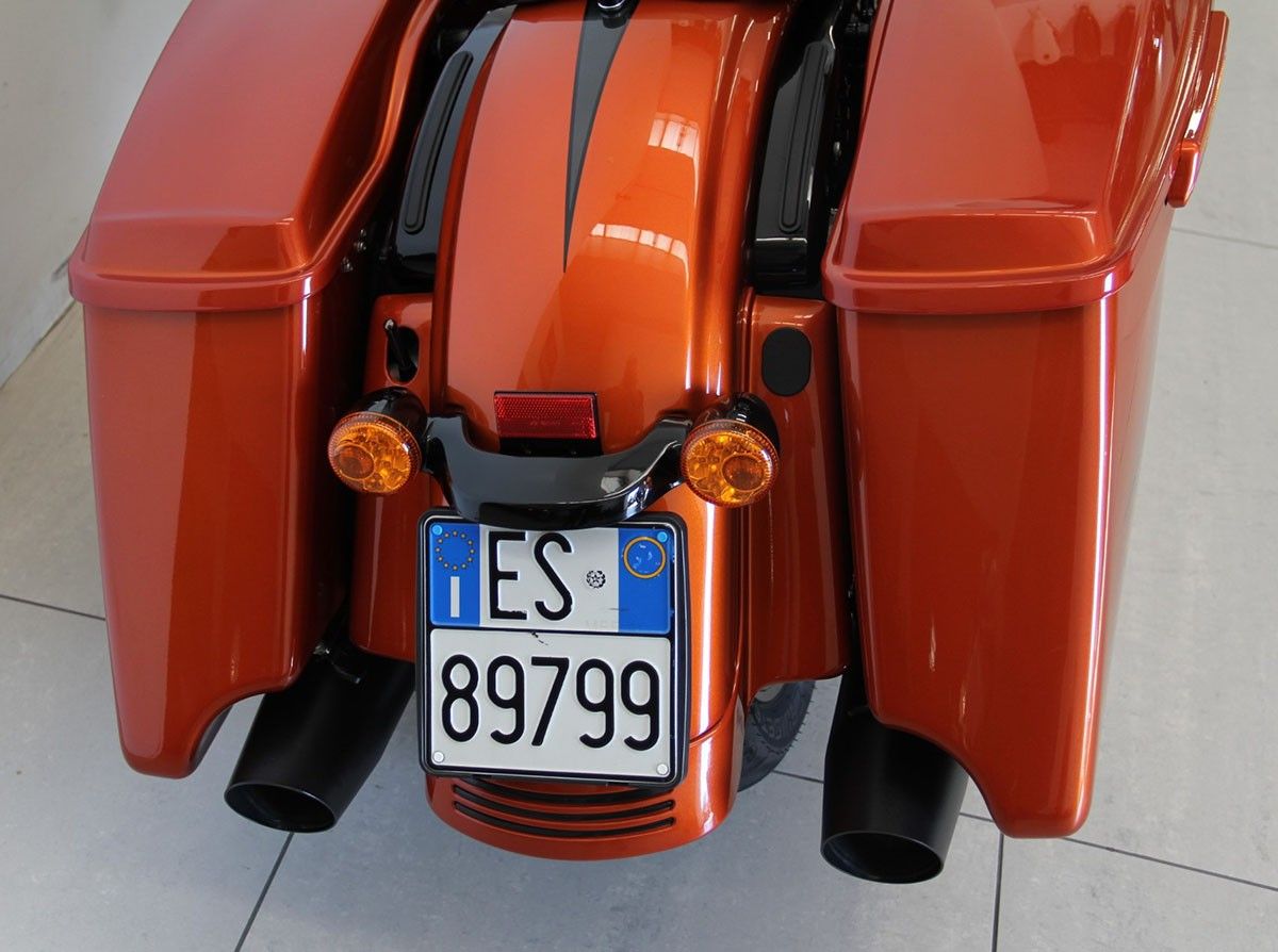 Bellissima Street Glide Special, resa ancor piu' attraente dalla colorazione "schorced orange silver flux", e la guida piu' comoda dalle manopole serie Kahuna. Distribuzione rinnovata e tagliando completo fatto, tutto esclusivamente dai meccanici Harley Davidson Bergamo ! |